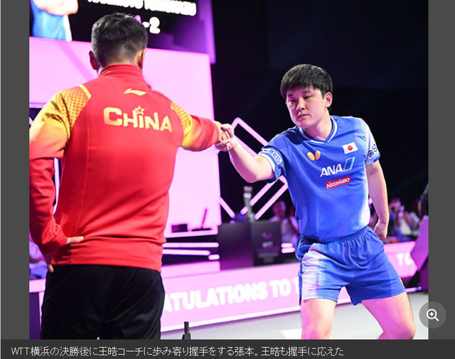本赛季第三场WTT(世界乒联)冠军系列赛——2025年WTT横滨冠军赛于当地时间11日在日本横滨文化体育馆鸣金收兵。在引人关注的压轴大戏男单决赛中,世界排名第二的国乒名将王楚钦2:4不敌日本“一哥”张本智和,与本赛季第五冠失之交臂。张本智和是踩着国乒男队的肩膀登上最高领奖台的,他在10日进行的一场男单8强战中,还曾以4:2击败世界排名第9的中国选手向鹏。不过其赛后与中国教练王皓的一个握手,意外在网上引发了热议。